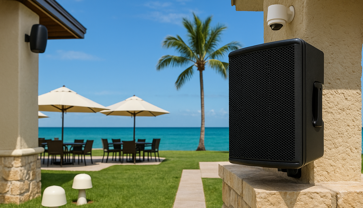 Great sound shouldn’t be limited to indoor spaces. At Fine Art Solutions, we design and install premium outdoor and commercial sound systems that bring clarity, power, and atmosphere to every environment — from open terraces and gardens to restaurants, resorts, and bars.